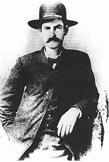 ![]() David Allen "Mysterious Dave" Mather posed for his only known photograph sometime during his term as Assistant Marshal of Dodge City (June 1, 1883 – April 10, 1884) | |