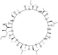 NIM811 is a form of treatment for patients with the hepatitis C virus (HCV). Studies indicate a strong relationship between a treatments cyclophilin binding affinity and suppression of HCV activity.[1] NIM811 is also being studied as a potential treatment to genetic muscular diseases such as Ullrich congenital muscular dystrophy (UCMD) and Bethlem myopathy (BM) disease, diseases altering the genes for collagen VI production.[2]