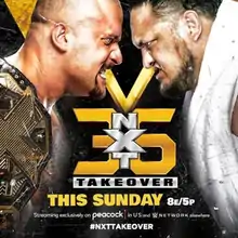 TakeOver was a series of professional wrestling shows that began in May 2014, as WWE's NXT brand held their second WWE Network-exclusive event, billed as TakeOver.[1] In subsequent months, the "TakeOver" moniker became the brand used by WWE for all of their NXT live specials. While originally exclusive to the WWE Network, NXT TakeOver events also became available on traditional pay-per-view (PPV) beginning with TakeOver 31 in October 2020,[2] and then also on Peacock after the American version of the WWE Network merged under Peacock in March 2021.[3]
