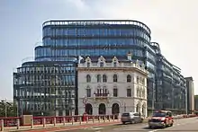 In 1997, Khalili bought Bath House, an office building on Holborn Viaduct for £7 million.[17] In 2007 planning permission was granted for an 11-storey office building called The Wave.[17] The building, completed in 2013, was designed by the architects Kohn Pederson Fox Associates.[18][19] Since 2010 the project had been a partnership between Khalili's property company Favermead and AXA Real Estate Investment Managers.[20] The new 210,000 square feet (20,000 m2) building was later leased by Amazon in 2013.[21] In 2014 the building became one of the 13 winners in the Urban Land Institute's Global Awards for Excellence, citing the blending of modern and historic architectural elements.[22]