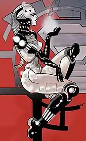 In the "DC Rebirth," continuity, Natasha is back to using her armor and no longer has any of her Vaporlock abilities.[18] Here she was in a romantic relationship with Traci 13, but they broke up [19] (It has now been confirmed that she is lesbian, as per the 2023 Pride cover for Steelworks). Following the No Justice event, she becomes a member of the new incarnation of the Titans.[20]