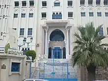 The Centre des correspondences de l’Etat formed in 1874, and became Archives générales du gouvernement in 1883. The archives became a "public institution in accordance with the stipulations of Act n° 88-95" in 1988.[2] Its headquarters moved from the office of the prime minister in 1999 to its current building, designed by Samy Ateb and Fethi El Bahri.[1] It is near the national library. Directors have included Moncef Fakhfakh (1986-circa 1993?)[1] and Hédi Jallab (2011-circa 2016?).[1][3]