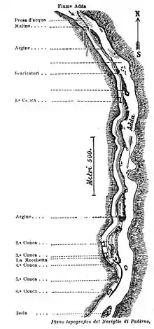 The Naviglio di Paderno was a navigable canal of the Navigli system in the Lombardy region of Northern Italy. Approximately 3 kilometers (1.8 mi) long, it was built to bypass the rapids on the Adda River in the Paderno d'Adda section of the river.