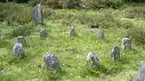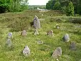 The Urnfield culture which succeeded the Tumulus culture is also represented at the site. This culture was named after its method of burial as well, the burial of cremated remains in urnfields. An urnfield cemetery with 940 graves dating to the early Iron Age lies between the megalithic tomb and the tumulus tomb. The graves are covered by heterogeneous stone pavement of up to four meters in diameter next to a standing stone. Circles of small stelae surround the graves and probably served to mark the graves and to protect the earthenware vessels. Occasionally, the cremated remains lay in a small stone box. Mainly adults were buried here, it was mostly women whose urns lay under the cobblestone pavement.