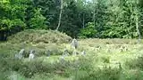 South of the megalithic tomb is a Bronze Age tumulus with a stone ring around its foot. Tombs of this kind are characteristic for the Tumulus culture named after this burial practice. Soil discoloration indicated two treetrunk coffin burials. A palstave and bronze needle were found as grave goods. There were more tumuli in the area which have been destroyed.
