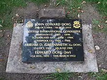 John Edward Doig[2] (29 October 1866 – 7 November 1919) was a Scottish footballer, who played as a goalkeeper. He played the peak of his career for Sunderland, in a period of time in the club's history where they were dubbed the 'team of all talents'.[3][4] He also played for Arbroath and Liverpool at club level, and was selected for Scotland five times. Noted for his exceptional performances in goal, he was also famously shy of his baldness, and always wore a cap with elastic.[1]