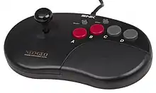The Neo Geo CD (Japanese: ネオジオCD, Hepburn: Neo Jio Shī Dī) is the second home video game console of SNK Corporation's Neo Geo family, released on September 9, 1994, four years after its cartridge-based equivalent. This is the same platform, converted to the cheaper CD format retailing at $49 to 79 per title, compared to the $300 cartridges.[1] The system was originally priced at US$399,[2] or £399. The system can also play Audio CDs. All three versions of the system have no region-lock. The Neo Geo CD was launched bundled with a control pad instead of a joystick like the AES version. However, the original AES joystick can be used with all three Neo Geo CD models.