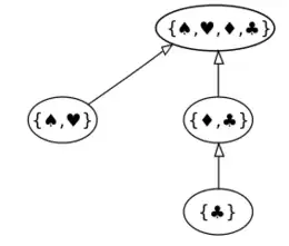 - B = {♠, ♥, ♦, ♣}; B1 = {♠, ♥}; B2 = {♦, ♣}; B3 = {♣};