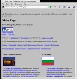 ![]() NetPositive 2.2 under BeOS R5 showing Wikipedia (no CSS support) | |