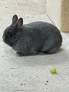The Netherland Dwarf is a breed of domestic rabbit that originated in the Netherlands. Weighing 1.1–2.5 pounds (0.50–1.13 kg),[1][2] the Netherland Dwarf is one of the smallest rabbit breeds. Its popularity as a pet or show rabbit may stem from its neotenic appearance. The Netherland Dwarf is recognised by both the American Rabbit Breeders Association (ARBA)[1] and the British Rabbit Council (BRC).[2] The Netherland Dwarf is often confused with the Polish breed of rabbit, but the latter has longer ears, a non-brachycephalic head and less cobbiness.