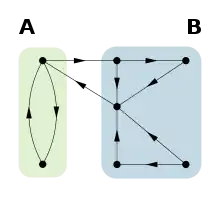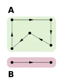 A food web, or food chain, is an example of directed network which describes the prey-predator relationship in a given ecosystem. Vertices in this type of network represent species, and the edges the prey-predator relationship. A collection of species may be represented by a single vertex if all members in that collection prey upon and are preyed on by the same organisms. A food web is often acyclic, with few exceptions such as adults preys on juveniles and parasitism.[15]