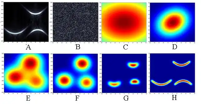 Finding patterns below noise can be an exceedingly complex problem. If an exact pattern shape is not known and depends on unknown parameters, these parameters should be found by fitting the pattern model to the data. However, when the locations and orientations of patterns are not known, it is not clear which subset of the data points should be selected for fitting. A standard approach for solving this kind of problem is multiple hypothesis testing (Singer et al. 1974). Since all combinations of subsets and models are exhaustively searched, this method faces the problem of combinatorial complexity. In the current example, noisy 'smile' and 'frown' patterns are sought. They are shown in Fig.1a without noise, and in Fig.1b with the noise, as actually measured. The true number of patterns is 3, which is not known. Therefore, at least 4 patterns should be fit to the data, to decide that 3 patterns fit best. The image size in this example is 100x100 = 10,000 points. If one attempts to fit 4 models to all subsets of 10,000 data points, computation of complexity, MN ~ 106000. An alternative computation by searching through the parameter space, yields lower complexity: each pattern is characterized by a 3-parameter parabolic shape. Fitting 4x3=12 parameters to 100x100 grid by a brute-force testing would take about 1032 to 1040 operations, still a prohibitive computational complexity. To apply NMF and dynamic logic to this problem one needs to develop parametric adaptive models of expected patterns. The models and conditional partial similarities for this case are described in details in:[10] a uniform model for noise, Gaussian blobs for highly-fuzzy, poorly resolved patterns, and parabolic models for 'smiles' and 'frowns'. The number of computer operations in this example was about 1010. Thus, a problem that was not solvable due to combinatorial complexity becomes solvable using dynamic logic.