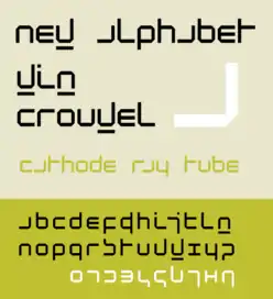 New Alphabet is a parametric typeface designed by Wim Crouwel, released in 1967. It embraced the limitations of the display technology that it was displayed on by only using horizontal and vertical strokes. This meant that some of the letters had little resemblance to the letters they were supposed to represent. New Alphabet was notably used on the cover of Joy Division's 1988 compilation album Substance.