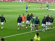 The Cosmos team of guest players at Old Trafford before the first match of the revived franchise v. Manchester United in August 2011