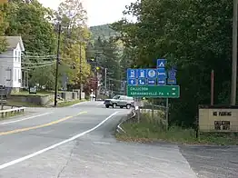 In 1911, the New York State Legislature created Route 3-a, an unsigned legislative route extending from the Pennsylvania state line at Port Jervis to Route 4 (later NY 17) in Hancock along the Delaware River.[7] Very little of this highway actually existed in reality; by 1920, only 3.69 miles (5.94 km) of the 62.27-mile (100.21 km) long route had been built.[8] In the 1930 renumbering of state highways in New York, the segment of former Route 3-a from Port Jervis to Callicoon was designated as NY 97, even though two sections of the route—between NY 42 at Sparrow Bush and Mongaup and from Pond Eddy to near the hamlet of Tusten—were still incomplete. The remainder of old Route 3-a north of Callicoon, which was fully constructed by 1930, became part of NY 17B.[2][9] In 1932, then-Governor Franklin D. Roosevelt signed legislation designating NY 97 as the "Upper Delaware Scenic Byway".