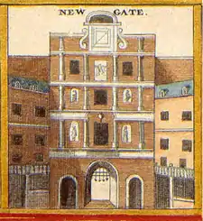 From the 12th century, at least, the gate was used as a prison for debtors and felons.[6] Jack Cade was beheaded publicly in Newgate after the conclusion of his failed rebellion.[7] The notorious Newgate Prison, was later extended to the south on the site of the modern Central Criminal Court on Old Bailey. The gate was demolished in 1767.[6]