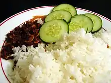 Ngapi (Burmese: ငါးပိ [ŋəpḭ], lit. 'pressed fish'), formerly also spelled ngapee,[1] nga-pee[2] and gnapee,[3] is a pungent paste made of either fish or shrimp in Burmese cuisine. Ngapi is usually made by fermenting fish or shrimp that is salted and ground then sundried. Like cheese, it can be distinguished based on main ingredient and regional origin. Ngapi can be distinguished by the type of fish used to make it. Ngapi can come from whole fish (such as ngapi kaung), from small fish (hmyin ngapi) or from prawns (seinza ngapi). Ngapi is a main ingredient of Lower Burmese cooking and is used as a condiment or additive in most dishes. Raw ngapi, with some exceptions, is not intended for direct consumption.