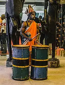 Ngoma (also called engoma or ng'oma or ingoma) are musical instruments used by certain Bantu populations of Africa. Ngoma is derived from the Kongo word for "drum". Different Bantu-inhabited regions have their own traditions of percussion, with different names for their instruments. In Kikongo, "ngoma" is used by extension to signify specific dances, social occasions, and rhythms. In Swahili, Ngoma music is used to describe music, dance, instruments including the drums, and events together as a joint cultural practice..[1][2]