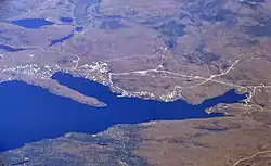 Aerial view of Skead (top) with Boland's Bay at right