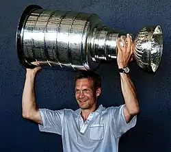 Erik Nicklas Lidström (pronounced [ˈnɪ̌kːlas ˈlîːdstrœm]; born 28 April 1970) is a Swedish former professional ice hockey defenceman and current vice president of hockey operations for the Detroit Red Wings.[1] He played 20 seasons in the National Hockey League (NHL) for the Detroit Red Wings from 1991 to 2012, which he captained for the final six seasons of his career.[2][3][4] He is widely regarded as one of the greatest defencemen in NHL history and nicknamed "The Perfect Human."