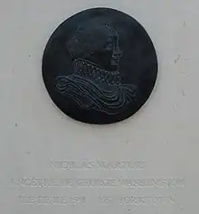 The garden behind the Ernest Cognacq Museum in Saint Martin de Ré holds a monument with a statue of George Washington, with the base of the monument featuring a medallion representing Martiau. The monument was inaugurated on October 11, 2007, by the ambassador of the United States to France. The relationship between the two men is described on the monument.