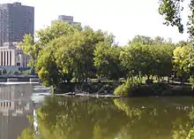In the 1970s the Minneapolis Park and Recreation Board made plans to make most of the island into an open area, which initially called for razing the buildings on the island, citing the cost of restoration and the value of a larger park near Downtown. In 1979 the Park Board began acquiring large parts of the island with funds from the Metropolitan Council, with a plan that would keep only the houses on the west side of the island, making the east side an open space, and keeping only the Island Sash and Door Company among the island's other buildings.[23][24][25] Because of the concerns of preservationists and residents, a further compromise redevelopment plan was made, and finalised in 1983. Following this plan, the Park Board restored the homes on the island and now owns them, but the previous residents were allowed to remain with 99-year leases despite the high cost of restoration.[17][26][27] The controversies resurfaced when DeLaSalle tried to build a football field,[23] which only went ahead after a ruling by the Minnesota Court of Appeals in 2007.[28]