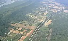 ![]() Aerial photo of Nittany Valley looking east from Milesburg with Bald Eagle Mountain on the left and Mount Nittany on the upper right | |