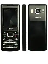 The Nokia 6500 classic is a mobile phone from Nokia announced on May 31, 2007. The phone runs the Series 40 platform. The case is made of brushed aluminium. At just 9.5 mm thick, the 6500 classic was Nokia's thinnest phone when released in October 2007. It is notable for being Nokia's few Series 40 phones with a large internal memory, 1 GB (along with the Nokia 7900 and others). It also had a similar sliding variant called Nokia 6500 slide. Both of them were the first Nokia phones where the miniUSB port was replaced by microUSB.