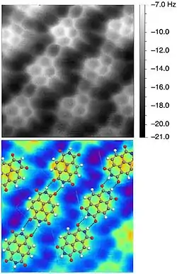 - Gross, L.; Mohn, F.; Moll, N.; Liljeroth, P.; Meyer, G. (2009). "The Chemical Structure of a Molecule Resolved by Atomic Force Microscopy". Science. 325 (5944): 1110–1114. Bibcode:2009Sci...325.1110G. doi:10.1126/science.1176210. PMID 19713523. S2CID 9346745.