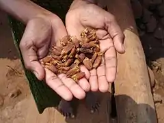 Non-timber forest products (NTFPs) are useful foods, substances, materials and/or commodities obtained from forests other than timber. Harvest ranges from wild collection to farming. They typically include game animals, fur-bearers, nuts, seeds, berries, mushrooms, oils, sap, foliage, pollarding, medicinal plants, peat, mast, fuelwood, fish, insects, spices, and forage.[1] Overlapping concepts include non-wood forest products (NWFPs),[2] wild forest products, minor forest produce,[3] special, minor, alternative and secondary forest products – for further distinctions see the definition section below