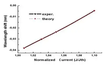 Based on the solution of the density matrix equations, Einstein coefficient for induced transition has been derived; it has been shown that the saturation effect is small for semiconductor lasers.[1][2] The formula of gain depending on the energy flux has been derived; it is the basic nonlinear effect in a laser. It has been stated that the main effect resulting in nonlinearity is the saturation effect.[1][2] For semiconductor lasers, the saturation effect is negligible. We derived the gain g for a Fabry-Perot semiconductor laser based on the density matrix equations and expressions for the natural linewidth.[1][2] Thus, the linewidth theory[2][8][9] is an integral part of the nonlinear theory. The resulting dependence of g on the energy flux has been called the main nonlinear effect in semiconductor lasers;[1][2] derivation of this relation formula is presented in.[1][2] Experimental wavelength shift versus normalized current (J/Jth), and the output power versus current have been simulated for a high-power laser with a quantum well of intrinsic semiconductor. Broadening of the states density due to different effects has been taken into consideration. The nonlinear theory made it possible to explain a number of experiments some of which could not even be explained (for example, natural linewidth), much less modeled, on the basis of other theoretical models; this suggests that the nonlinear theory developed is a new paradigm of the laser theory. Due to the nonlinear theory development, recommendations can be given for creating lasers with smaller natural linewidth, and lasers with higher output power.