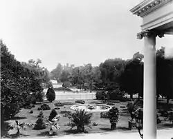 In 1848, a bronze statue of Thomas Jefferson was placed in middle of the lawn by President James K. Polk; it was replaced by a pool and "gurg" steam-driven fountain in 1871.[4] Through the remainder of the 19th century the North Lawn was planted with increasingly complex seasonal "carpet" style flower bedding punctuated by tropical plants borrowed from the White House glass houses.[5]