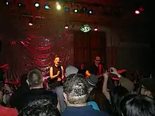 In late 2011, Garbage announced their return to touring upon the release of Not Your Kind of People, marking the band's first live performances since 2007, and their first tour since 2005.[65][66] "Thinking about going back on the road is both thrilling and terrifying in equal measure," Manson stated, "...but we've always enjoyed a little pain mixed in with our pleasure."[1] Manson considered that self-reflection helped change the way the group approached touring, and, as a result, "we're playing the best shows of our career."[67] Eric Avery, who performed with the band during their Bleed Like Me tour, rejoined them as the tour bassist.[68] The band played concerts throughout North and South America, Europe, Oceania and Asia.[66][69]