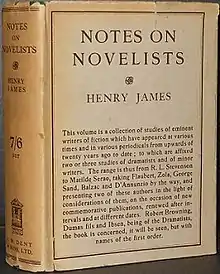 Notes on Novelists is a book of literary criticism by Henry James published in 1914. The book collected essays that James had written over the preceding two decades on French, Italian, English and American writers. The book also contained a controversial essay, The New Novel, 1914, which passed judgment on various contemporary writers and occasioned much disagreement.