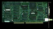 Starting in 1987, Novell began selling its own Ethernet-based network adapter cards.[39] These included the 8-bit NE1000, and then in 1988, the 16-bit NE2000.[40] They priced them lower than cards from competitors such as 3Com, whose card Novell had previously been distributing.[39] By 1989, Novell's cards were being sold at a rate of 20,000 per month, aggressively expanding Novell's market presence.[41] At that point, Novell transferred the NE1000/NE2000 business to Anthem Electronics, the firm that had actually been making them, but the cards remained branded as Novell products.[41]