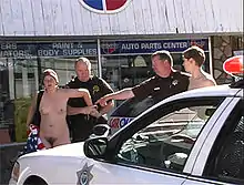 Nudity is sometimes used as a tactic during a protest to attract media and public attention to a cause, and sometimes promotion of public nudity is itself the objective of a nude protest.[1] The use of the tactic goes back to well published photos of nude protests by svobodniki in Canada in 1903. The tactic has been used by other groups later in the century, especially after the 1960s. Like public nudity in general, the cultural and legal acceptance of nudity as a tactic in protest also varies around the world. Some opponents of any public nudity claim that it is indecent, especially when it can be viewed by children; while others argue that it is a legitimate form of expression covered by the right to free speech.