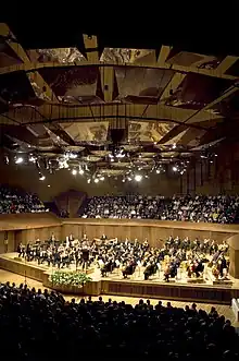 The Orquesta Filarmónica de la UNAM (National Autonomous University of Mexico's Philharmonic Orchestra, also known as OFUNAM) was founded in 1936 and is the oldest symphonic group in Mexico City. It is based at Sala Nezahuacóyotl at the University City of the National Autonomous University of Mexico, in Mexico City. It was the first orchestra in Mexico to present annual concert seasons. It has become a tradition that the orchestra presents an annual program of Mexican symphonic music.