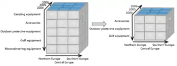 An OLAP cube is a multi-dimensional array of data.[1] Online analytical processing (OLAP)[2] is a computer-based technique of analyzing data to look for insights. The term cube here refers to a multi-dimensional dataset, which is also sometimes called a hypercube if the number of dimensions is greater than three.