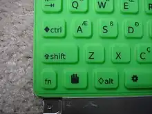 • Water-resistant membrane keyboard, customized to the locale in which it will be distributed.[43] The multiplication and division symbols are included. The keyboard is designed for the small hands of children.