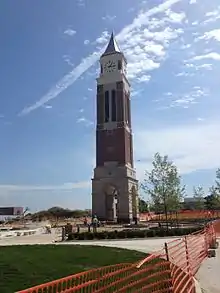 In 2013, the Oakland University Board of Trustees approved a $65 million investment in campus expansion and improvement projects. Completed in the fall of 2014, projects included: construction of a nearly $30 million student housing complex; dramatic enhancement of outdoor recreation and athletic fields; construction of a 1,240-space parking structure, and; construction of new headquarters for facility and grounds maintenance operations.[25] Longtime supporters of the university, Hugh and Nancy Elliott, made a donation to construct the Elliott Tower on the campus. The 151-foot carillon tower was completed in fall 2014 and houses the last bells to be cast by the Royal Bellfoundry Petit & Fritsen of the Netherlands.