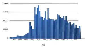 Octopus aquaculture describes the captive-raising of octopuses and commercial sale of their meat. A complex and labor-intensive form of farming, octopus aquaculture is being driven by strong market demand in the Mediterranean and in South American and Asian countries.[1] Annual global demand for octopus more than doubled from 1980 to 2019, from roughly 180,000 to about 370,000 tons.[2] The supply of octopus has been constrained by overfishing in many key fisheries[3] and proponents of farming suggest human-induced culturing could help restock natural populations.[4] Opponents of the nascent industry argue that cephalopod intelligence and emotional capacity, as well as the solitary and carnivorous character of octopuses, make them particularly ill-suited to intensive, captive breeding. Commercial sale may stimulate market demand, hastening rather than offsetting the decline in wild stocks.[5] An announcement that a Spanish firm would begin octopus aquaculture as early as 2022 prompted ethical and scientific controversy.