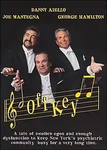 Off Key (also known as Desafinado) is a 2001 Spanish-British-Italian comedy film written and directed by Manuel Gómez Pereira.[1][2] In it Joe Mantegna, Danny Aiello, and George Hamilton star as three celebrity tenors. Although they perform and have some good times together, they are rivals onstage and in their private lives. They also undergo intense scrutiny from the paparazzi and gossip press over their love lives and careers. The film was loosely inspired by the real life Three Tenors, Plácido Domingo, Luciano Pavarotti, and José Carreras.[1]
