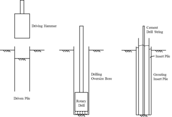 Installation issues pertaining to drilled-and-grouted piles include borehole stability, unwanted soft cuttings at the base of the hole, hydrofracture of the soil leading to loss of grout, and thermal expansion effects.[14]