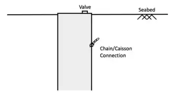 Suction caissons (also known as suction buckets, suction piles, or suction anchors) are a new class of embedded anchors that have a number of economic advantages over other methods. They are essentially upturned buckets that are embedded into the soil and use suction, by pumping out the water to create a vacuum, to anchor offshore floating facilities. They present a number of economic benefits, including quick installation and removal during decommissioning, as well as a reduction in material costs.[7] The caisson consists of a large-diameter cylinder (typically in the 3-to-8-metre (10 to 26 ft) range), open at the bottom and closed at the top, with a length-to-diameter ratio in the range of 3 to 6.[8] This anchoring solution is used extensively in large offshore structures, offshore drilling and accommodation platforms. Since the rise in the demand for renewable energy, such anchors are now used for offshore wind turbines, typically in a tripod configuration.