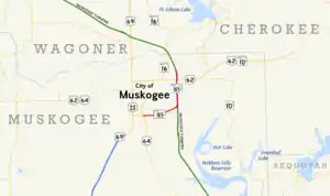 - Official State Map (PDF) (Map) (1987 ed.). Oklahoma Department of Transportation. Muskogee inset. Retrieved August 14, 2012.