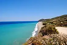From the peak of Kallimani Mountain (elevation 750 meters) visitors have a panoramic view of the coast and the Aegean. Skyros and the Northern Sporades Islands can also be seen.