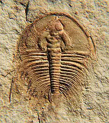 Olenellus is an extinct genus of redlichiid trilobites, with species of average size (about 5 centimetres or 2.0 inches long). It lived during the Botomian and Toyonian stages (Olenellus-zone), 522 to 510 million years ago, in what is currently North-America, part of the palaeocontinent Laurentia.[4]