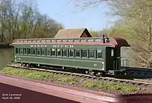 ![]() On2 scale model of a SR&RL Coach, kitbashed from two Bachmann On30 coaches. | |