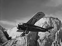 The "cast" also starred a Ford Trimotor as well as a Hamilton H-47 Metalplane, and Travel Air 6000 single engine monoplanes. All of these types accurately represented the types of aircraft flying in the period depicted by the film. The Metalplane was the airplane Joe Souther crashes while trying to land in heavy fog, and was only used for ground shots. In 2007, one of the Hamilton props used in the simulated flying scenes for this aircraft surfaced on an episode of Antiques Roadshow; its owner had been able to screen match it, confirming its authenticity.[14] The Travel Air was used in the exciting mine rescue flying scene, while the Ford Trimotor was featured in another dramatic landing that ends in a fiery crash. Midway through the film, Paul Mantz flew a Boeing Model 40 biplane in a spirited aerobatic performance, reprising his earlier scene in Flight from Glory. Only Angels Have Wings has become very popular among enthusiasts of the aircraft of the golden age of aviation.[15]