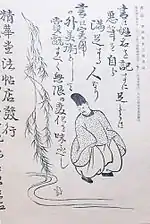 Ono no Michikaze or Ono no Tōfū (小野 道風, 894 – February 9, 966) was a prominent Shodōka (Japanese calligrapher) during the Heian period (794–1185). One of the so-called Sanseki 三跡 (Three Brush Traces), along with Fujiwara no Sukemasa and Fujiwara no Yukinari, Michikaze is considered the founder of Japanese style calligraphy or wayōshodō (和様書道) and popularly extolled in Japan as the "reincarnation of Wang Xizhi."